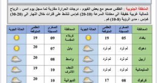 أكمل القراءة »طقس العراق.. امطار و انخفاض درجات الحرارة في مناطق متفرقة من البلاد