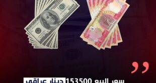 استقرار أسعار صرف الدولار في بغداد ▫️سعر البيع 153500 دينار عراقي ▫️الشراء 152500 دينار لكل 100 دولار