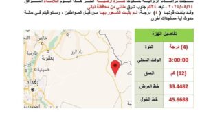 أكمل القراءة »الرصد الزلزالي: الهزة الأرضية التي ضربت مندلي بديالى كانت بقوة (4) درجات