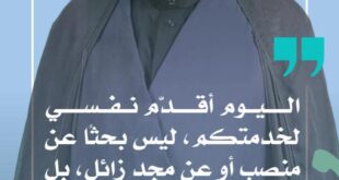 مرشح الإنتفاضة الشعبانية ناصر الموسوي :خدمتنا للوطن ليست طموحًا شخصيًا ولا سعيًا وراء منصب